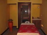 ホテルを18時にチェックアウトし、予約していたクロンボガンにあるインタンスパへ。ここはラディソン、ヒルトン内にあるスパと同じ系列のThe Spaなので、期待度大ですわ!!しかし、このインタンラグーナってホテルは、なんて暗いんだ??スパへの道なんて真っ暗でスパは閉まってるのかと思ったよ・・・; ̄ロ ̄) なんとかスパにたどり着くと、中は一転してキレイ!で、早速個室へ〜ってコトで、担当の女性が2名来たんだけど、その片方の女性を見てTOMOさんが「あれれ??まぁ!アユじゃない!」と。彼女はちょっと前までクタにある「SPA50X」に勤めていたそうです。腕がかなり良いとのコトで、今はここに移ったんだって!で、「TOMOさんはいつでも来れるから良いでしょう??」って訴え?私がアユのマッサージを受けれるコトになったのだ!ラッキー!!初めは個室の予定だったんだけど、予約がかち合っちゃっていて、2人用ビラで行うことに。写真の説明をしておくと、1枚目が1人用の個室、2枚目がフェイシャル専用の個室(2名まで)、そして3枚目がビラ。広いよ〜。ちゃんとシャワーの可愛いバスもあるし!あ、前の2つは冷房が入っているんだけど、ビラは冷房が入っていません。ま、夜だから全然問題なかったけどね〜。でも、すぐに蚊に刺されそうだったので、しかり蚊取り線香を炊いてもらいましたよん!今回のメニューは時間も考慮して、お気に入りのスウェディッシュアロマセラピーを。話通り、アユのマッサージは上手い!気持ち良かった!!