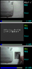 コマ送り を使って再生を行います。■ボタンで停止します。