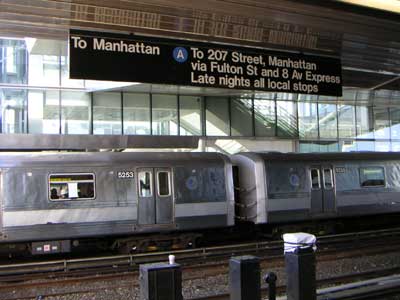 今年はタクシーを使わない方針で、JFK国際空港から全面開通したばかりのエアートレインでハワードビーチ駅へ5ドル、普通は地下鉄と合わせて7ドルを払うわけですが、一週間乗り放題21ドルのメトロカードを購入。メトロカードを買う券売機が、なぜかクレジットカードが使えなかったりして、かなり時間を食った。地下鉄Aで途中まで行き、各停のCに乗り換えるのであるが、この路線はお客が少なく、まわりの風景もやや殺伐としており、NYが初めてとか夜の場合には、あまりいい感じはしないだろう。白タクにつかまってエライ目に会う人も多いそうで、タクシーを使う場合は絶対に正式なタクシー乗り場をご利用下さいとのこと。