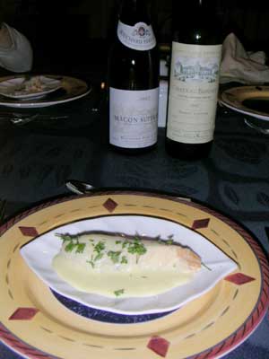 | サーモンのレモンソース 日本人好みの味でグッドでした。 シャトウ・ボネという白ワインも美味 |
