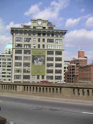 ブルックリン橋のそばにDUMBOの代表的なビルがある。
