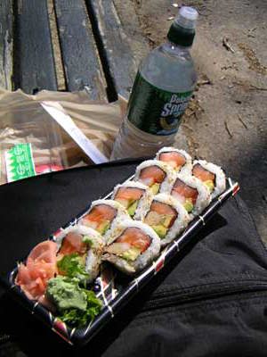 気持ちのよい日で、ブルックリン橋近くの公園で寿司のテイクアウト