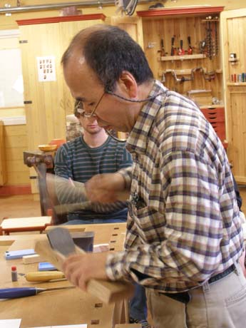 興奮がさめないが、Injon駅でRamon氏と再会、サテルグランタンに到着。美しい学校である。宿泊する部屋に入って、その美しさとハンドクラフトの味がいたるところにあるすばらしさに驚嘆した。展示会を見学して、5時から鉋のデモンストレーションを木工室でする。
