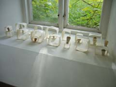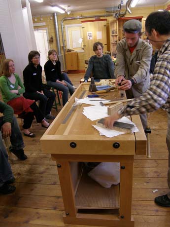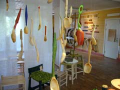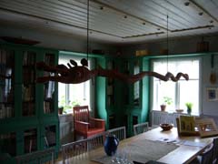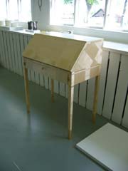 前日が日曜で夕食がなかったため腹が減ったが、よく寝た。やっと体がスウェーデン時間になったようだ。6時頃起きて、メールチェックをし、雨なので洗濯物を室内に移す。朝食後、校長と再会し、明日の出発予定も決定する。今日は夕方4時半ごろから展示会を見ることができるようだ。Oさんのナイフを借りて木を削りながら時間を過ごす。11時にショップが開いたので、ハーブティーや料理本をお土産に買った。二人の生徒さんの誕生パーティーだとかで、ケーキが二つあっての10時のお茶の時間。誕生日には自分でケーキを用意してきて、皆に祝ってもらうとか。不思議な習慣である。4時30分の夕食はカネロニ、昼は野菜スープとアイスクリームであった。夕食後、U先生の案内でほぼ準備完了の展示場を見る。U先生は昨年娘が絵のコースに行った時の先生で、よく覚えていてくれた。作品は、あいかわらずレベルが高い。箱物は100%と言ってよいほど、ベニアを使ったもの。欧州では最高級の家具は上質の単板を使い、芯から自分で作り上げた、ベニア構造のものなのだ。その後、奥さんの車で移動し、C先生と再会。四方山話をして、ビールを買って、カペラに帰った。パブロン二錠とビール一缶でよく寝れるだろう。