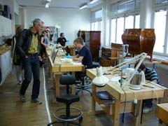 午後一時のバスでカルマルへ向かう。カペラでゆっくりと時間があるので、いろいろ考えた。日本の個人の工房ではめずらしい「ベニアリング」がこちらの要だと思うし、引き出し箱の作り方も興味深かった。C先生が学校に居られなかったので、二日ほど、勝手に生徒さん達と知り合い、工房での作業を見学したことになる。最初は、「変な日本人」と思われたと思うが、半日ほどウダウダしていると、次第に馴染んでくる。こういう滞在もめずらしいかもしれない。