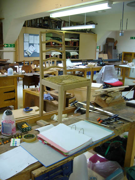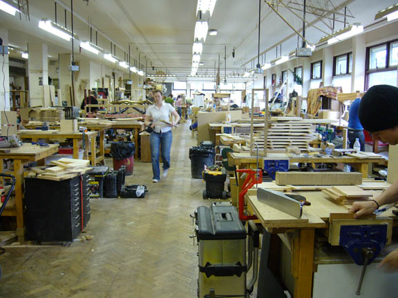 今までアメリカの木工や北欧、特にスウェーデンは4度も行っているので、「イギリスの木工はどんなだろうか?」と興味があった。行ってみて、やはりイギリスは洋家具の老舗という感じがした。イギリス国内にはもう家具製造現場はあまり活発ではないだろうと思っていたが、ロンドン郊外の大学での熱気のこもった家具コースを見て多いに刺激を受けた。オリジナリティーを大切にする姿勢がひしひしと感じられたのだ。私が見せた教室展の写真を見て、マーチンさんは洋家具の影響を受けた家具が多いのに驚いたようである。日本で木工をする人間としては、ちょっと反省。漆とか和とか言わなくても、やはり独自の「日本」を感じる家具や作品を作っていきたいものだ。