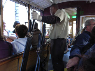 朝起きて、近くのカフェで安いコーヒーとパンの朝食。一日乗り放題11ドルのケーブルカーとバスの切符を手に、ケーブルカーに向かうが、えらい人。結局、出発点に行って、一時間近く並んでやっと乗れた。でも一番いい席で値打ちはあった。