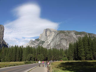 またまた延々ドライブし、ヨセミテバレーに入る。エルキャピタンなど巨大な岸壁が見え、奥にはハーフドームも見えるが、全体の規模が大きいせいか、それほど雄大に感じない。でも近くに行くと流石にスケールがでかい。大学時代に少し岩登りをかじったことがあるので、岩にばかり目が行く。車で行ける谷の再奥まで行って、引返した。娘は観光地見物があまり好きでなく、世界のヨセミテと言えども、例外ではないようだ。少々後ろ髪を引かれる思いもあるが、できるだけデジカメに収め、バレーを後にする。