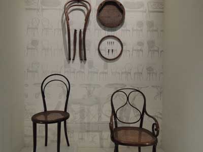 立派な入口を入り、左奥のエレベーターで6階へ行くと家具と陶器の展示場。細長い展示場の両側と中央に、古い時代から現代の家具まで多数展示がされています。また木、金属、石、プラスチック、繊維など様々な材料を使い、手の技からコンピューターによる立体成型の技術まで展示やタッチパネル、ビデオ等で丁寧な展示がなされていました。