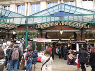 ポートベローの次は、大英博物館。ただ土曜日ということで、メチャ混み。私は二度目なので、ミイラやロゼッタストンなど見所を足早に回り、人並みを避けるように外に出た。そこから歩いてコベントガーデンへ。コベントガーデンは映画「マイフェアレディー」のロケ地として有名で、雰囲気があって好きな場所。今回は奥の方にあるクラフトマーケット的な所もじっくり見た。ただ、ここも人が多い。地下からおいしそうな匂いがするのでたまらなくなり、パエリアを一皿買って食べるが、日本のお祭りの屋台みたいに、値段のわりに量が少なかった。