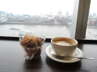 それから橋を渡って現代美術のテートモダンへ行く。二度目だが私はここが結構お気に入りだ。最上階のカフェでテムズ川越しにセントポール大聖堂を見ながら、カフェタイム。