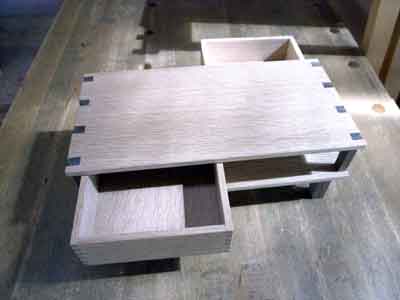 中の小箱も、テーブルソウによるフィンガージョイント |