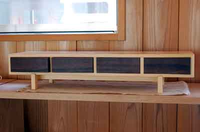 卓上両面キャビネット「河」 ヒバとブラックウォールナットで作った、両面から使う卓上用。このタイプで大きく作っても面白いかもしれない。 |
