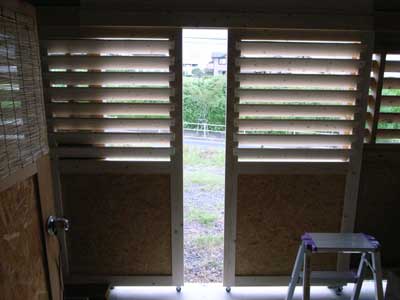 教室の夏休み、西側の日よけ用扉を作りました。 |