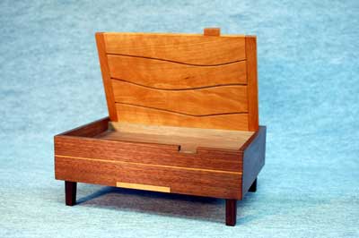 | 卓上小箱「山並」 人気のあるセンで作った箱を、展示会用に、ブラック ウォールナットとチェリーで作ってみました。 |