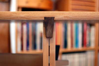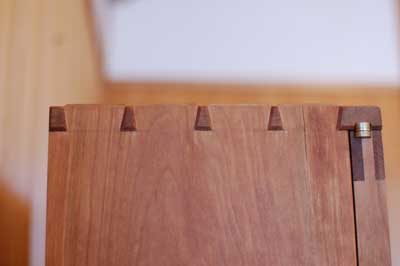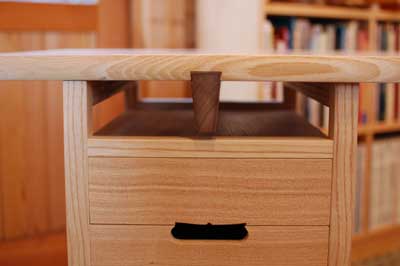 | ブラックウォールナットのアリ桟は、隠さず両側に露出 させ、アクセントにしています。 |