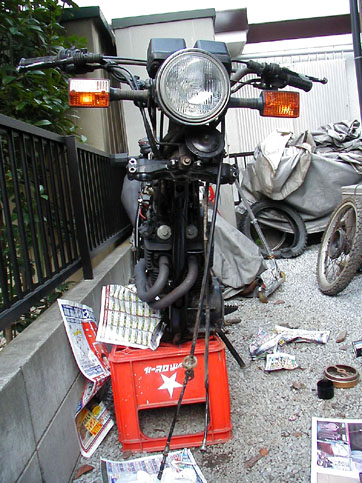 さて、大きな整備として残されたところは、ついにフロント周りだけになった。 (灯火類の接触がイマイチだとか、ドライブスプロケットがぐらついているとか、スポークが錆だらけだとか細かなことは残ってはいるが・・・。)