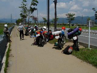 (手前から)酔金セロー,地下鉄セロー,アベXLR,ゴ三浦セロー,ナースXRバハ,組長XR600