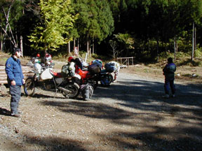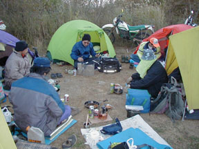 全員連泊の柳沢林道途中の野宿地。