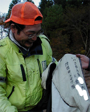 三倉氏の二重シュラフの中側は、氏が少年時代にカブスカウト(78団ゆうやけ隊)で使っていたもの。