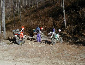 午後3時の買い出し後,本日の野宿地に向かう東豊林道の途中での休憩。