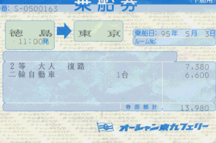 ついに,四国へ行くことになった。GWということもあって,東京(有明)発新門司行きの東九オーシャンフェリーの東京・徳島間をかなり早めに予約した。