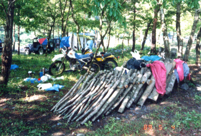 ミン坊 : ロゴステント2人用(立川のトポスで購入\2,980),ストーブ(キャンピングガス),ランタン(キャンピングガス),ジャケット(南平のダイクマで購入\1,980,在庫処分,その後10年間使い続ける。実はオンロード用)