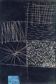 2003年2月8日(土)−23日(日) 10:30−6:30<火曜日定休>最終日5時迄 日本の風土から生れた抽象のためのパステル作品。その乾いた粉に 向き合った時間と厚みを考えてみる。1960年代からのパステル画と 油彩 約50点で構成する展覧会です。ご高覧下さい。 「チェス」パステル 「青い窓」パステル