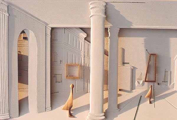 2001年11月9日(金)−18日(日) 10:30−6:30<水曜日定休> 古典絵画の遠近法の世界に去来する天使たち。 ウッドレリーフで展開する伊藤芸術をご堪能下さい。 1、「天使と遠近法 2001」 部分 ウッドレリーフ 19,4×48,8×2,5cm