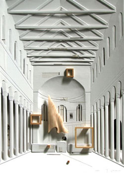 伊藤利彦「天使と遠近法」2006 ウッドレリーフ