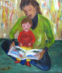 常盤井常子「YoとLico」油彩画 堤 剛宏「白いテーブルと果物」油彩画