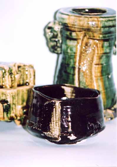 織部 ORIBE 曽根芳之 展 2003年12月3日(水)−10日(水) 10:30−6:30<会期中無休>最終日5時迄 山で新しい土を発見。作家が いきいきするのはこう いう瞬間なのですね。織部の茶碗、花入、菓子器な ど 約80点を発表しますので、どうか おこし下さい。